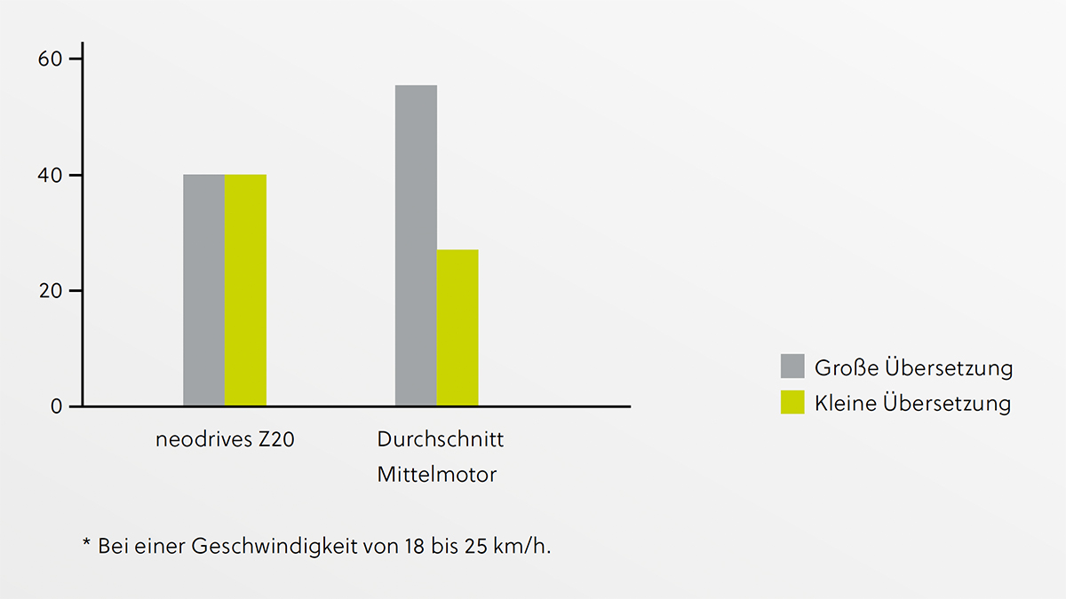 Konstante Leistung – unabhängig vom Gang: Das neodrives-System im Vergleich zum Mittelmotor.